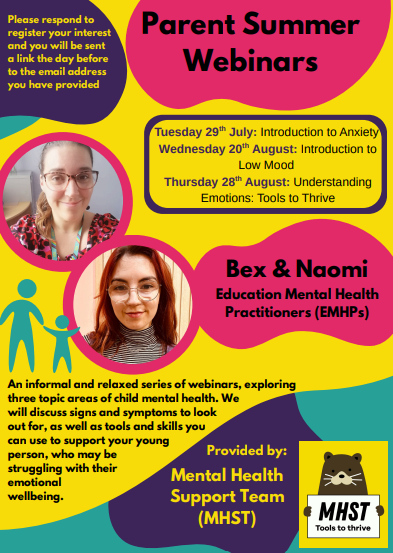 Free Phone Helpline for Parents:  Young Minds; 0808 802 5544 (Mondays to Fridays 9.30am – 4pm)