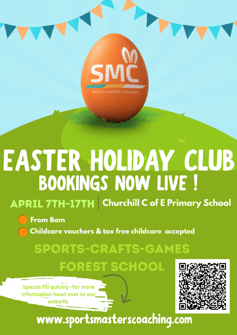 - Holiday club bookings:https://bookwhen.com/smc-churchill-holiday-club